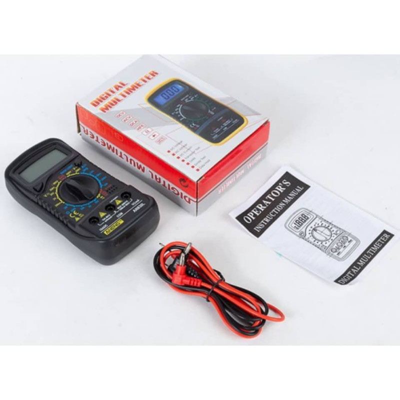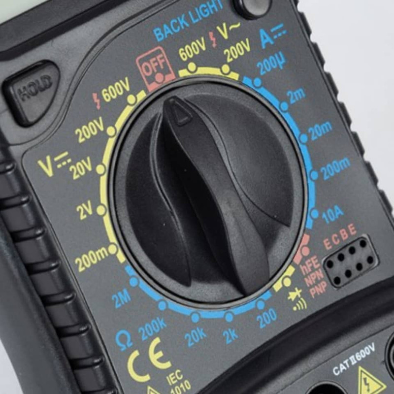مولتی متر دستگاهی برای اندازه گیری چندین کمیت الکتریکی مانند: ولتاژ، جریان، مقاومت الکتریکی، ظرفیت خازنی و ... که میتونید با اون سلامت یا مشخصات قطعات الکتریکی یا الکترونیکی رو مشخص کرد. مولتی متر یک ابزار کاربردی برای مهندسین برق و الکترونیک هستش. امروز گلدتگ مولتی متر Aneng مدل AN830L رو به شما پیشنهاد میکنه. این مولتی متررتوسط سیم های قرمز و مشکی( Prob ) کمیت های الکتریکی رو اندازه گیری میکنه و نتیجه اندازه گیری رو بر روی صفحه نمایش نشون میده. شما میتونید توسط سلکتور( دکمه چرخنده که روی دستگاه قرار داره) رنج اندازه گیری رو مشخص کنید مثلا زمانی که میخواهیم کمیت ولتاژ رو اندازه گیری کنیم سلکتور رو روی اندازه گیری ولتاژ قرار میدیم.