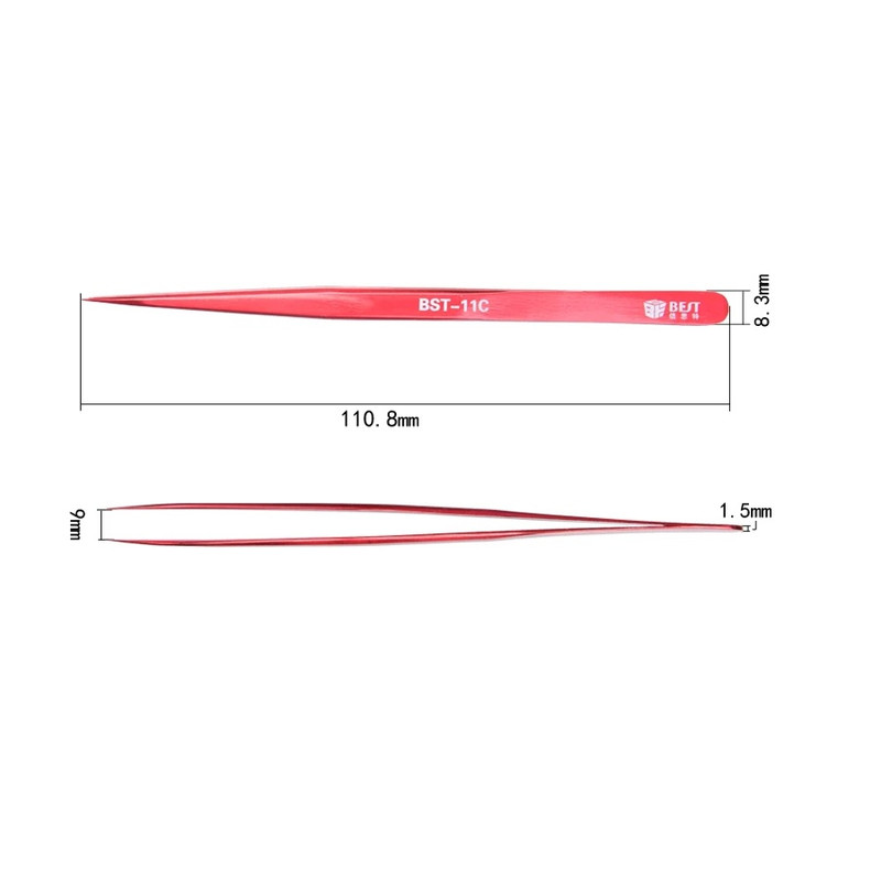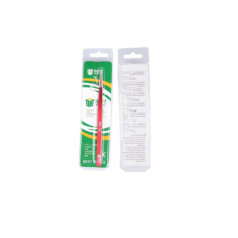پنس ضد الکتریسیته بست مدل BST-11C یک ابزار حرفهای برای تعمیرات الکترونیکی، جایگذاری قطعات SMD، تعمیرات موبایل، ساعتسازی و کارهای ظریف است. این پنس با طول 140 میلیمتر و طراحی آنتیاستاتیک، ضد زنگ و مقاوم در برابر اسید، برای کار با قطعات حساس الکترونیکی مناسب است. بدنه از استیل ضد زنگ ساخته شده و نوک سر صاف و ظریف آن دقت بالایی در جابهجایی قطعات کوچک فراهم میکند. این پنس برای استفاده در محیطهای حساس به الکتریسیته ساکن ایدهآل است.
