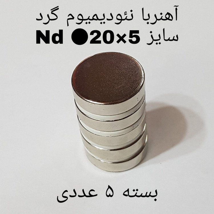 سایر توضیحات: آهنربای سوپر مگنت گرد به قطر 20 و ضخامت 5 میلیمتر
