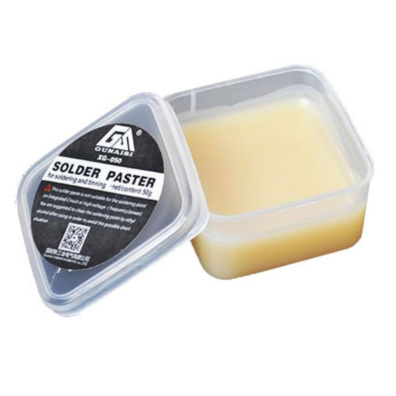 خمیر و مایع فلکس برای برداشتن اکسیداسیون(= سهولت در قلع پذیری قطعات) از روی فیبر مدار چاپی و پایه ی قطعات استفاده میشود.خمیر فلکس یک مایع احیا کننده قلع است که در اثر تماس با قلع شکل کروی یا محدب شکل به آن میدهد این مسئله سبب میگردد کار تمیزتر و همچنین اتصالات بهتر ایجاد شود. ضمناً در حد معقولی از اتصال بین پایه ها هنگام مونتاژ و برداشتن جلوگیری میکند که با این خاصیت کمک بزرگی به عدم پخش شدن قلع به اطراف کار ( که سبب خوردن پایه ها بهم یا اتصالی پایه ها میشود) میکند. همچنین خمیر فلکس باعث خوب پخش شدن حرارت می شود که موجب بالا رفتن تحمل گرما توسط قطعات شده و از سوختن آنها جلوگیری میکند و در کناراین خاصیت می توان از مایع فلکس به عنوان مایع خنک کننده هم استفاده کرد.این خمیر با برند GUNAISI اصالتا آلمانی و از کیفیت بالایی برخوردار است .