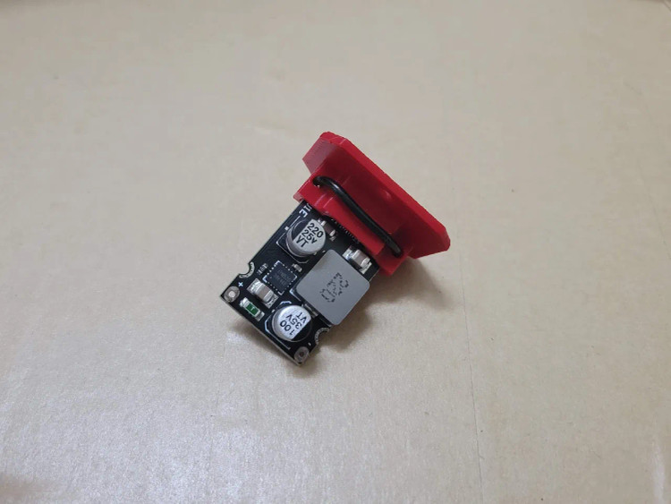 ۱. ولتاژ ورودی (مثلا 20 ولت از آداپتور یا منبع تغذیه) را به ماژول متصل نمایید.