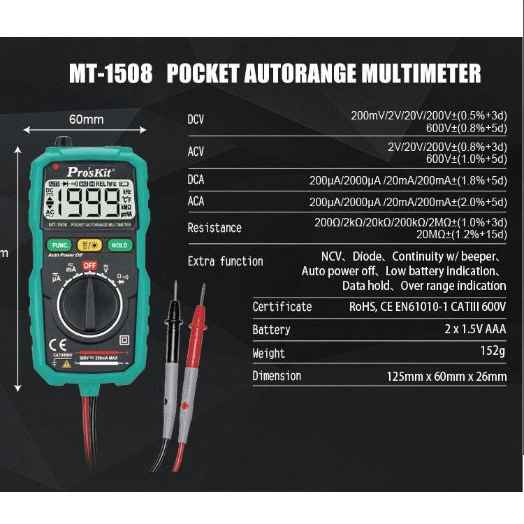 ولتاژ DC: 200mV/2V/20V/200V±(0.5%+3d) 600V±(0.8%+5d) ولت