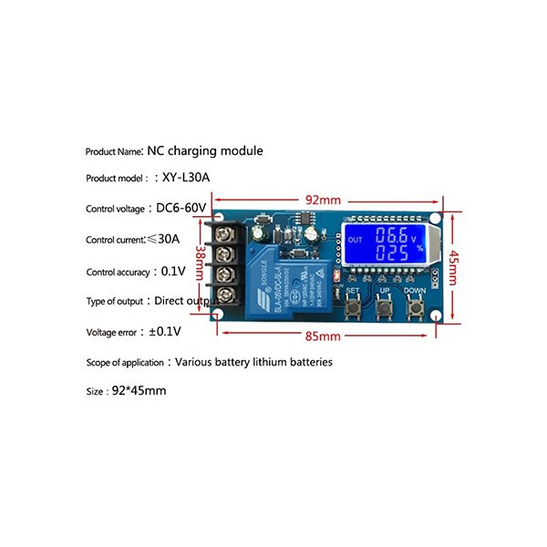 ماژول کنترل شارژ باتری دیجیتال 6 الی 60 ولت مدل XY-L30A
