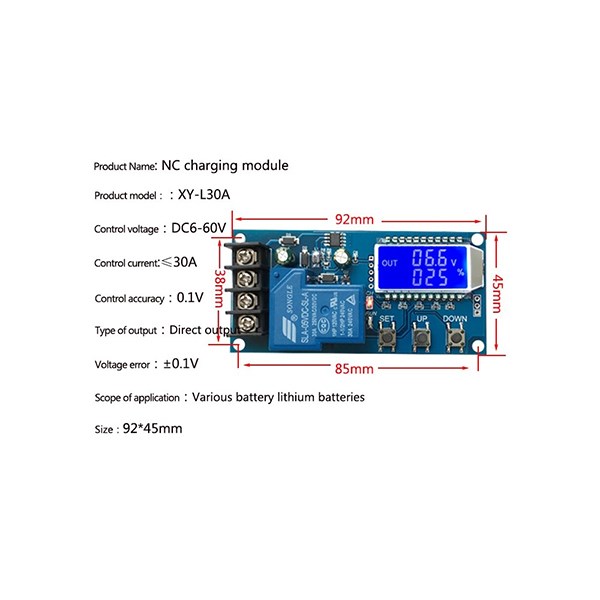 از این ماژول برای کنترل کردن شارژ انواع باتری Lead-acid battery and Acting Battery ولتاژ 6V تا 60V استفاده میشود . دارای نمایشگر LCD دیجیتال، قابلیت تنظیم ولتاژ خروجی، محافظت شده در برابر اتصال کوتاه و اضافه بار، محافظت و شارژ انواع باتری، محافظت از دشارژ و تخلیه و قطع خودکار در صورت فول شارژ شدن Full Power Off Overcharge Protection Switch 6-60v