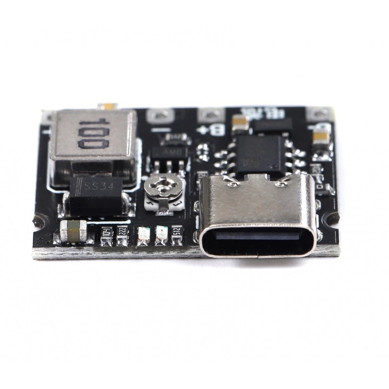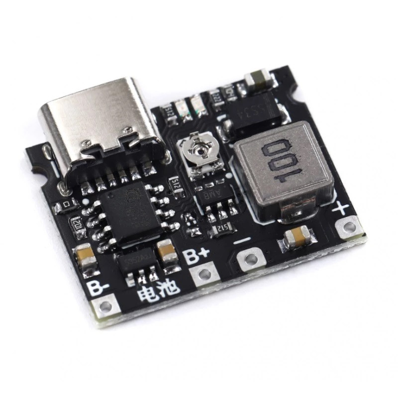 با این ماژول می توانید به راحتی باتری های لیتیومی را شارژ کنید. این ماژول با دارا بودن ورودی USB Type-Cمی تواند تغذیه خود را تامین می کند و همچنین می توانید از پین های کناری سوکت جهت اعمال ولتاژ شارژ بر روی باتری استفاده کنید. این شارژر دارای دو نشانگر LED درحال شارژ(LED قرمز) و نشانگر شارژ کامل(LED آبی) میباشد. علاوه بر آن با دارا بودن پتانسیومتر بر روی ماژول امکان تغییر ولتاژ خروجی نیز میسر می باشد .
