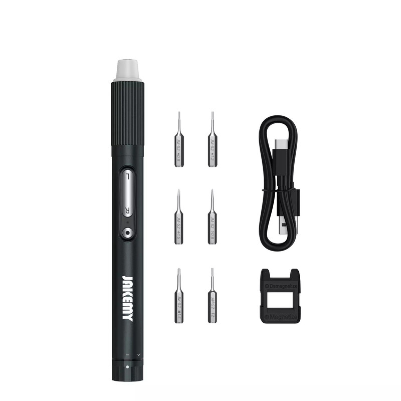 پیچ گوشتی برقی جاکمی مدل JM-Y05 یک ابزار حرفهای و جمعوجور برای تعمیرات الکترونیکی، تعمیرات موبایل، تبلت، لپتاپ، ساعت و عینک است. این مجموعه شامل یک پیچ گوشتی برقی با باتری قابل شارژ و 9 عدد سری پیچ گوشتی با جنس فولاد کروم-وانادیوم (CR-V) است که مقاومت و دوام بالایی دارند. سریها دارای خاصیت مغناطیسی برای سهولت در کار با پیچهای کوچک هستند. موتور الکتریکی با گشتاور قابل تنظیم، امکان باز و بسته کردن پیچها را با سرعت و دقت بالا فراهم میکند. طراحی ارگونومیک دسته و وزن سبک، استفاده طولانیمدت را راحت میکند. این ست برای انواع پیچهای دوسو، چهارسو و ستارهای (Torx) مناسب است و با جعبه نگهداری فشرده عرضه میشود.