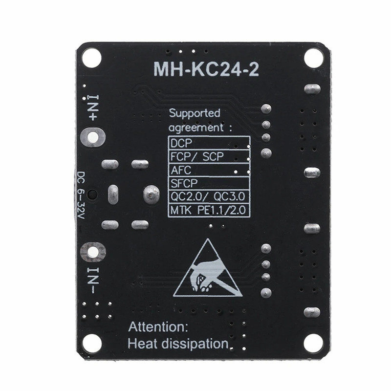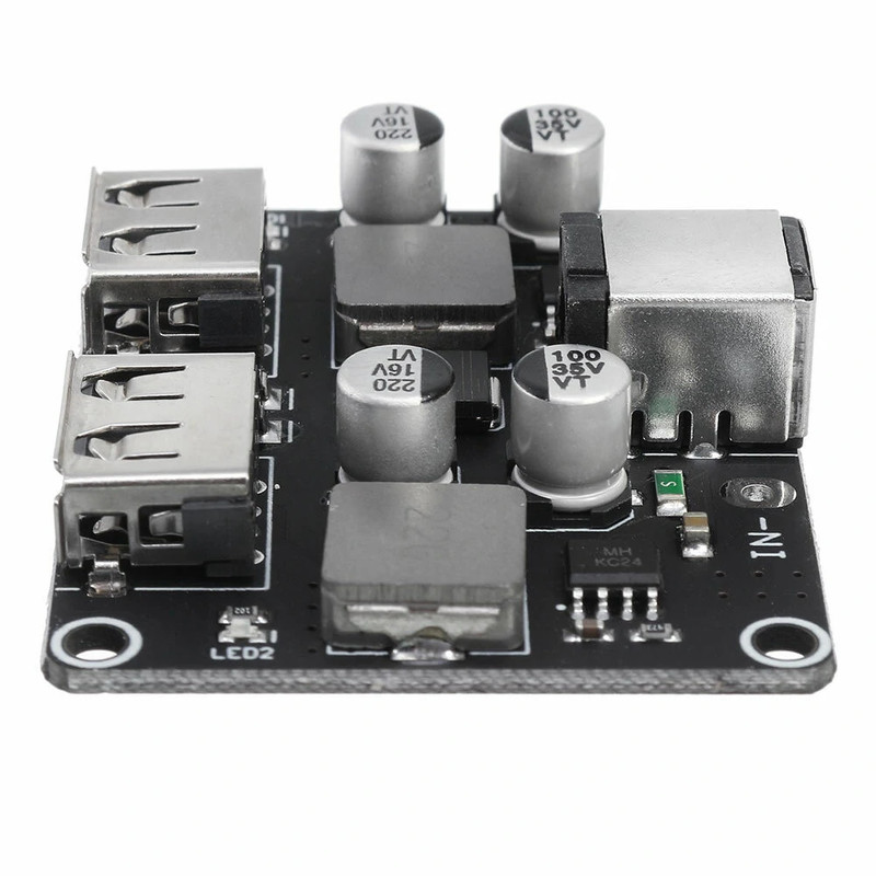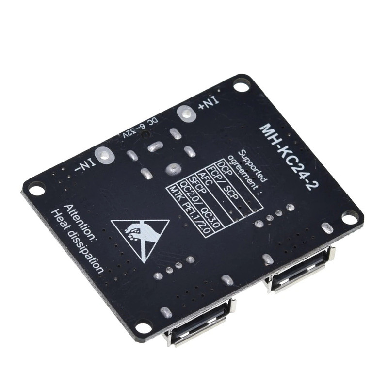 کاربرد این ماژول، ساخت شارژر فست شارژ 24 واتی دو پورت با اتصال آن به یک منبع با ولتاژ بین 6 تا 32 ولت (دارای حداقل توان 48 وات) است. برای مثال باتری اتوموبیل، موتور سیکلت، ups، شارژر لپتاپ و یا آداپتور 12 ولت 4 آمپر به بالا.