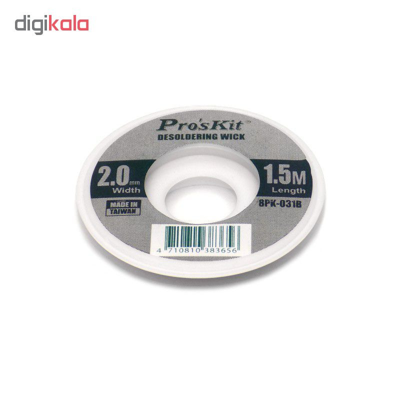 سیم قلع کش پروسکیت مدل 8PK-031B یک محصولات شناخته شده در بین تعمیرکارهای الکترونیک به حساب می آید. این محصول دارای عرض 2 میلی متر و طول سیم 1.5 متر می باشد. شیوه کار سیم قلع کش به این گونه می باشد که شما باید شیلد مسی این قلع کش را روی قسمت هایی از برد که نیاز است قلع اضافی آن برداشته شود گذاشته و سپس هویه را روی آن قرار دهید، هنگامی که قلع ذوب شود جذب سیم قلع کش شده و از روی برد برداشته میشود، برای استفاده مجدد نیاز است مقداری از شیلد مسی که قلع را جذب کرده با سیم چین قطع کنید و از مابقی سیم استفاده نمایید. این نوع قلع کش برای برد های SMD و ظریف بسیار کاربردی و مناسب است.