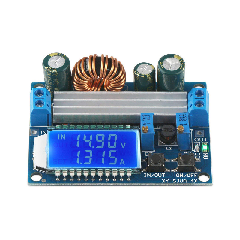 این ماژول یک مبدل ولتاژ و جریان با عملکرد کاهنده-افزاینده میباشد. با اتصال ورودی ماژول به ولتاژی بین 6 تا 30 ولت DC، میتوانید خروجی بین 0.5 الی 30 ولت داشته باشید. ولتاژ و جریان خروجی روی صفحه نمایش LCD دارای نور زمینه نمایش داده میشود و نیازی به ولت متر نیست. هم چنین قابلیت نمایش ولتاژ ورودی و توان خروجی را دارد. به دلیل داشتن امکان محدود کردن جریان خروجی، برای شارژ انواع باتری های شارژی و درایو چیپ های ال ای دی نیز مناسب است.