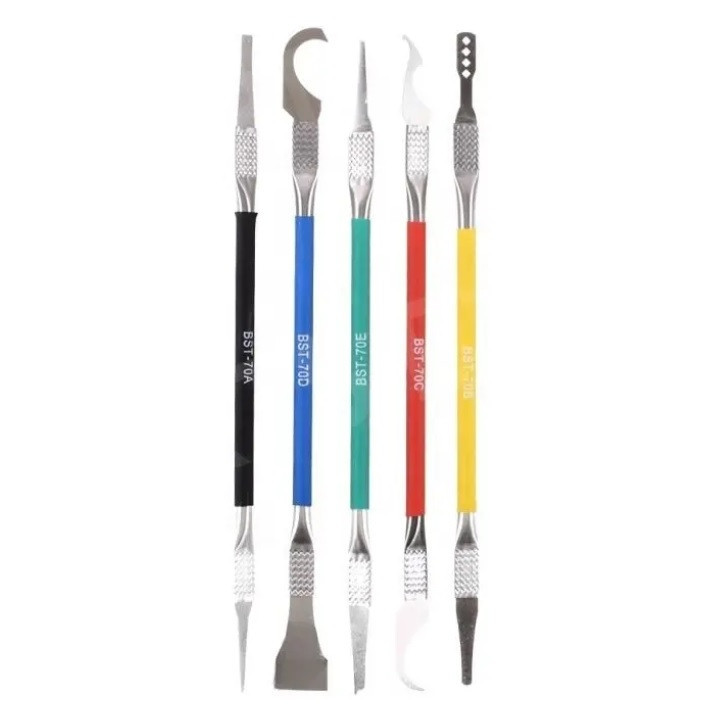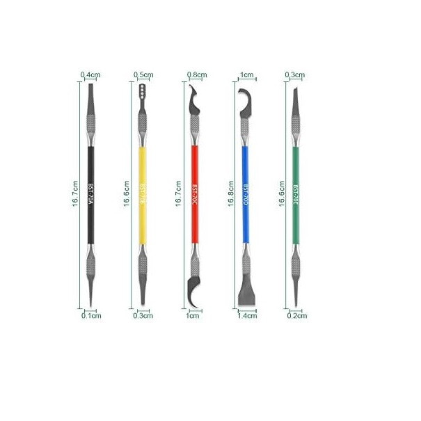 سایر توضیحاتتعداد 5عدد تیغ با سر غیر قابل تعویض مناسب برای جداسازی قطعات حساس و دارای هیتسینک مناسب برای برد های الکترونیکی حساس و ظریف