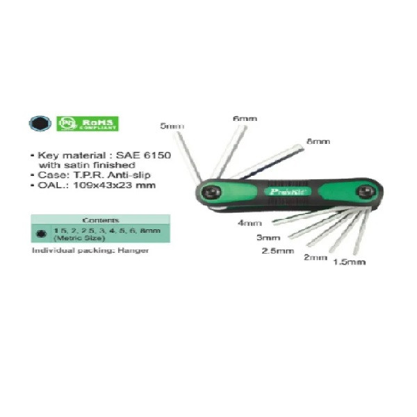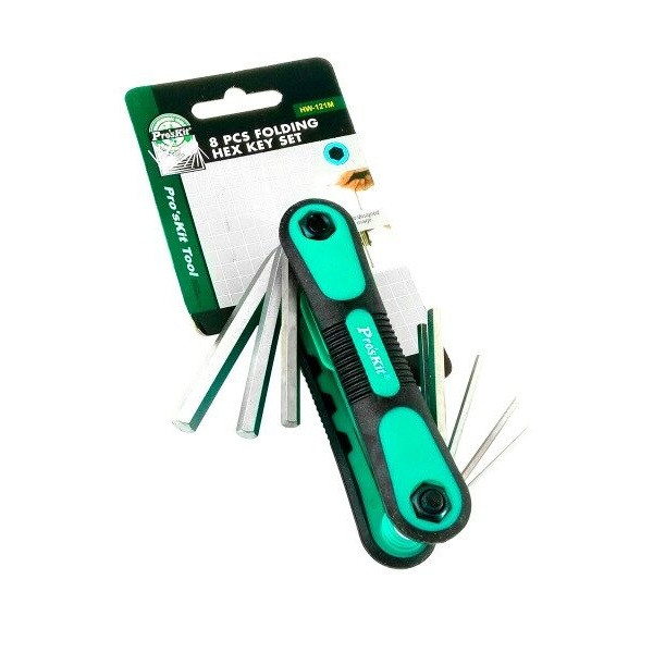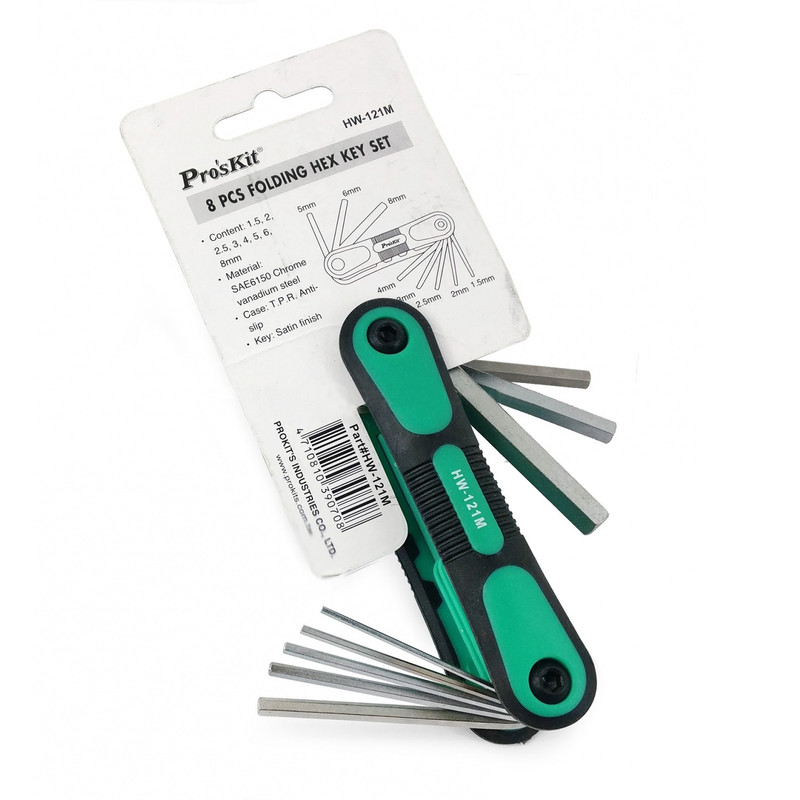 این مجموعه توسط شرکت پروسکیت در تایوان تولید شده است.این محصول شامل 8 آچار سر آلنی در سایزهای 1.5, 2, 2.5, 3, 4, 5, 6, 8 میلیمتر میشوند. متریال به کار رفته برای ساخت این مجموعه آچار، آلیاژ کروم-وانادیوم است که موجب عدم واکنش آن با رطوبت میگردد؛ همچنین این آلیاژ در برابر خوردگی مقاومت بالایی دارد. این آچارها در کنار هم به صورت کاملا فیکس و ثابت قرار دارند تا هیچگونه لغزشی در هنگام استفاده نداشته باشند. مجموعه آچار مدل HW-121M دارای ابعاد کوچک و مناسبی است که در داخل یک دست جا میگیرد و تنها با وزن 151 گرم، فضای بسیار کمی از جعبه یا کیف ابزار شما را میگیرد.