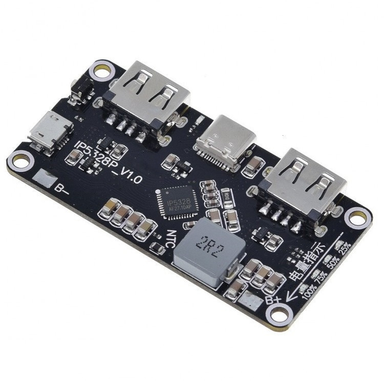 این محصول یک ماژول پاوربانک با خروجی فست شارژ 3 (QC 3) است. حداکثر توان خروجی این ماژول 18 وات بوده، دارای دو خروجی یو اس بی و دو ورودی میکرو یو اس بی و تایپ سی است. روی برد 5 عدد ال ای دی وجود دارد که 4 عدد از آنها برای نمایش وضعیت باتری و شارژ و دیگری برای نمایش فعال بودن حالت فست میباشد. مزیت مهم این ماژول، پشتیبانی از حالت فست شارژ هم در حالت خروجی و هم در حالت ورودی (برای شارژ شدن پاوربانک) میباشد. برای شارژ شدن پاوربانک در حالت فست، از شارژر 5 ولت با جریان حداکثر 3.5 آمپر میتوانید استفاده کنید. فست شارژ حالت خروجی، روی هر دو پورت USB قابل استفاده است، ولی در صورت اتصال بیش از یک مصرف کننده، حالت فست غیر فعال شده و ولتاژ خروجی 5 ولت خواهد بود. برای راه اندازی این ماژول لازم است باتریهای موازی شده را به +B و -B متصل کنید. در هنگام اتصال باتری ها به ماژول به مثبت و منفی ماژول توجه داشته باشید زیرا در برابر ولتاژ معکوس حفاظت نشده و در صورت اتصال معکوس ماژول آسیب خواهد دید. دقت کنید که به منظور فعال شدن حالت فست شارژ در خروجی، لازم است مجموع باتریهای متصل شده توانایی ارائهی حداقل 6 آمپر جریان را داشته باشند. از این رو توصیه میشود از باتریهای نو، با کیفیت و با جریان دهی (C ریت) بالا استفاده کنید. همچنین توجه نمایید که به دلیل عبور جریان بالا از باتریها به ماژول، از سیم ضخیم (حداقل سطح مقطع 0.5 میلیمتر) برای اتصال باتریها به ماژول استفاده نمایید و محل اتصالات را به خوبی با قلع محکم نمایید. گرم شدن سیم و نقاط اتصال در زمان کارکرد ماژول، نشانهی ضعیف بودن آنهاست و میتواند موجب غیر فعال شدن حالت فست پاوربانک شما شود. محدودیتی در تعداد باتریهایی که به این ماژول متصل میشوند وجود ندارد و هر تعداد باتری لیتیومی (لیتیوم یون - لیتیوم پلیمر) را میتوان موازی و به ماژول متصل نمود. به منظور تامین جریان لازم برای ماژول (6 آمپر) توصیه میشود از 4 باتری یا بیشتر که هر کدام دارای 1.5 آمپر جریان خروجی (یا بیشتر) باشند استفاده کنید. با موازی کردن باتریهای بیشتر، ظرفیت پاوربانک شما بیشتر خواهد شد.