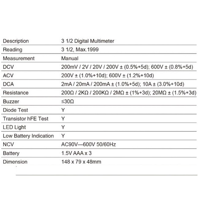 دامنه جریان AC: 2mA/20mA/200mA ±(1.0% +5 d) , 10A±(3.0% +10d)