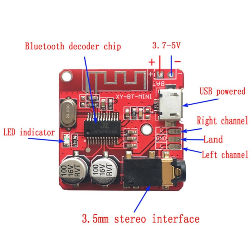 ماژول بلوتوث صوتی ساده ترین و با کیفیت ترین گیرنده صوتی بلوتوثی مناسب برای تجهیز نمودن پخش خودرو به بلوتوث و بی سیم نمودن اسپیکر و هدفون است همچنین دارای خروجی AUX می باشد.