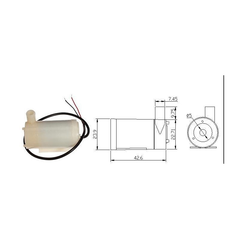 پمپ آب مینی دارای ولتاژ کاری 5V-3V DC مناسب جهت کاربردهای آبیاری در گلخانه هوشمند ، پمپ آب آکواریوم ، پمپ آب، سنگچین تزیینی یا کاربرد آب پاشی در رباتهای آتشنشان دارای خروجی جهت نصب شیلنگ آب .این مدل پمپ قابلیت غوطه ور شدن در مخزن آب دارد