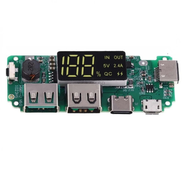 تنها با اتصال یک منبع ولتاژ 5 ولتی با درگاه میکرو USB به ورودی شارژر میتواند باتری متصل به خروجی را تا 5V شارژ نماید. این ماژول بطور کلی برای منابع تغذیه قابل حمل که ازباتری های lithium 18650 استفاده میکنند مناسب است. جریان مناسب برای شارژ باتری موبایل به طور خودکار تنظیم میشود. این ماژول برای توان کمتر از 0.5 وات و بالاتر از 10.5 مناسب نیست. این ماژول دارای مدار محافظ نمیباشد بنابر این با توجه به ولتاژ 3 تا 4.2 ولتی نباید باتری های چندتایی سری با یکدیگر موازی شوند. باتری باید دارای ظرفیت 4A حدودی برای دشارژ باشد. این ماژول مدار محافظ overcharge و over discharge برای باتری لیتیومی همچنین مدار محافظ خروجی over current و اتصال کوتاه دارد. لازم به ذکر است که این ماژول مدار محافظ پلاریته معکوس ندارد و درصورتی که اتصال باتری به درستی انجام نشود ماژول آسیب می بیند طبق تصویر مثبت باتری به B+ و منفی باتری باید به B- متصل شود . ماژول پاور بانک AN-1000 دارای سه رابط ورودی رابط پورت مادگی میکرو USB و type-c و lightning است و دوخروجی USB با ماکزیمم جریان 2.4 آمپر دارد .