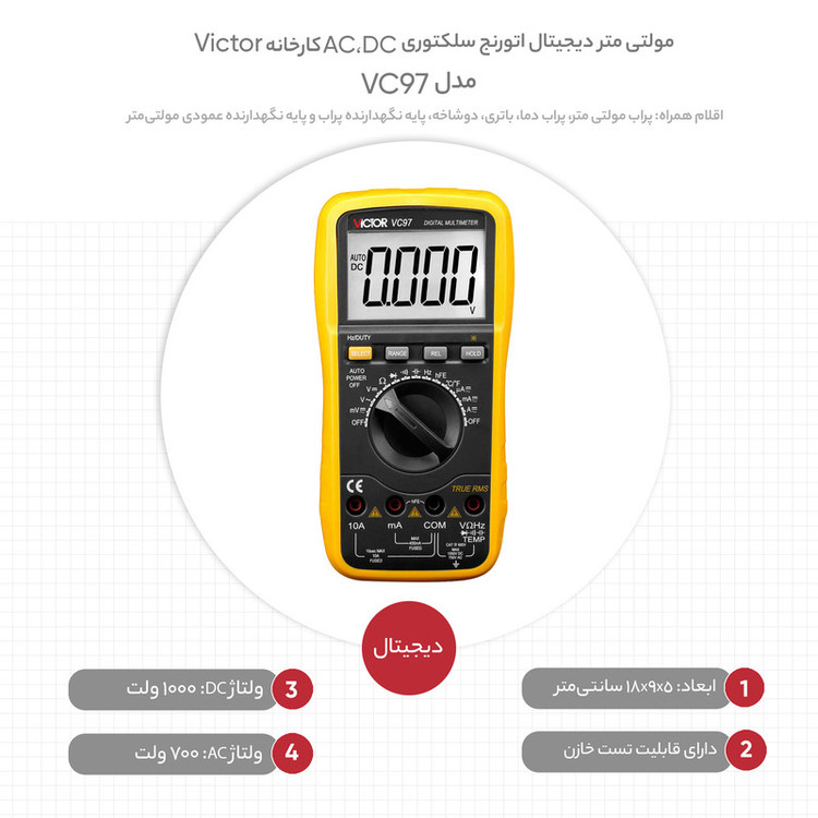 دامنه جریان AC: 400μ-4m-40m-400m-10A