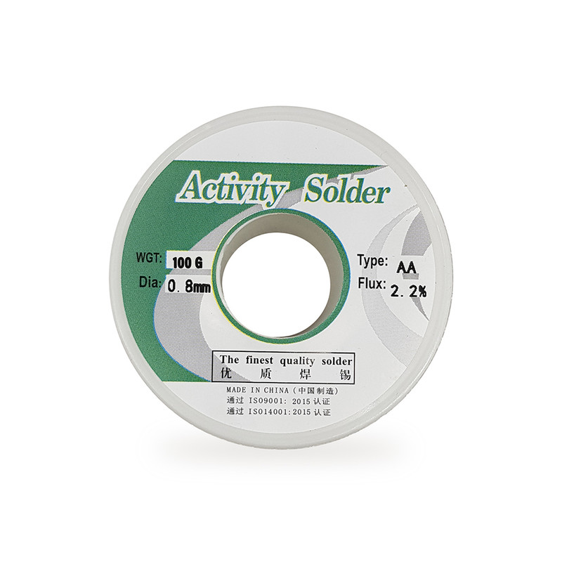 سایر توضیحات: - سیم لحیم بسته 100گرمی - وزن خالص سیم لحیم تقریبا 95 گرم - قطر سیم 0.8 میلیمتر - آلیاژ 63% قلع و 37% سرب - کانال مرکزی سیم حاوی روغن لحیم