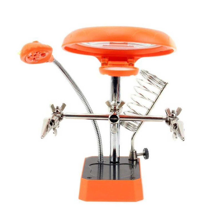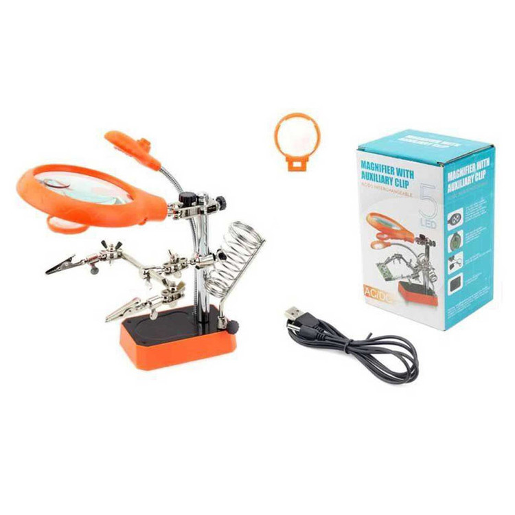 سایر توضیحاتدارای 2 عدد ذره بین دارای محفظه نگهداری هویه دارای نور LED دارای گیره نگهدارنده برد و قطعات به همراه یک عدد آداپتور