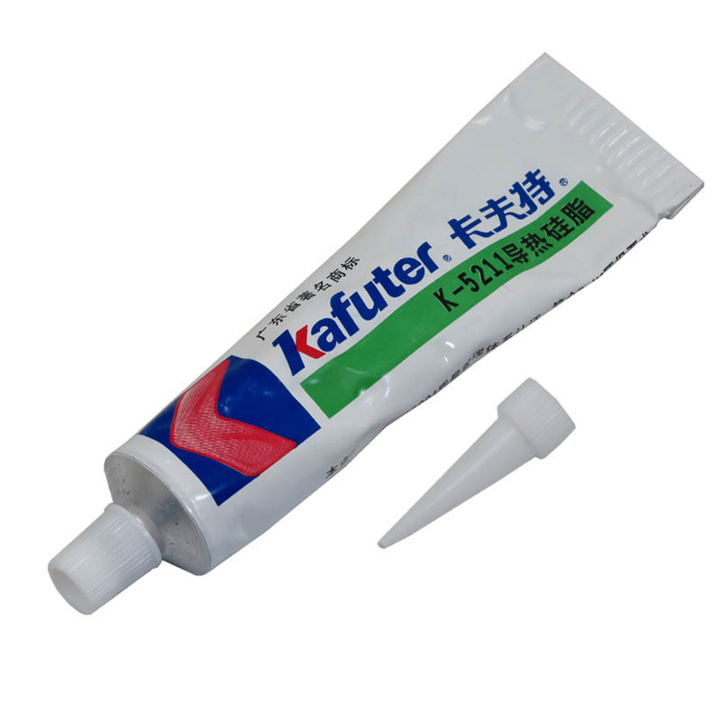 خمیر سیلیکون یا خمیر حرارتی Kafuter K-5211 رابط انتقال حرارت از روی انواع چیپ های الکترونیکی و کامپیوتر به روی خنک کننده (heat sink) است. این رسانای گرمایی بین دو قطعه فلزی مورد استفاده قرار میگیرد که معمولاً این دو قطعه پردازنده و سیستم خنک کننده یا هیت سینک هستند. توسط این خمیر گرما میان پردازنده و هیت سینک جابجا شده و باعث کارکرد بهتر پردازنده می شود. این خمیر زمانیکه بر روی پردازنده یا هیتسینک شما قرار میگیرد کلیه فضاهای خالی میکروسکوپی که بر روی پردازنده یا هیتسینک شما قرار دارد را پر میکند، زیرا هوا رسانای ضعیفی برای گرماست و این فضاهای خالی باعث عدم انتقال درست گرما و درنتیجه عملکرد ضعیف سیستم خنک کننده میشوند. خمیر سیلیکون یک رسانای گرمایی بسیار خوب است و در اینجا به عنوان رابط حرارتی عمل میکند و تا صد برابر هوا قادر است گرما را منتقل کند.حجم خالص خمیر سیلیکون این محصول 100 گرم میباشد که با مدل هم نام 45 گرمی خود تفاوت بسیار دارد