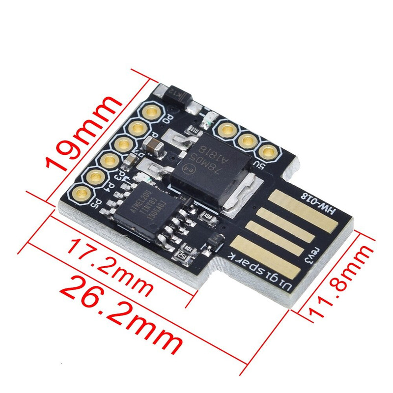 برد دیجی اسپارک مدل PCB USB یکی از کوچکترین اعضای خانوادهی آردوینو است. البته به نوعی یک عضو غیر رسمی! زیرا این برد به صورت پیش فرض در برنامهی آردوینو موجود نیست و باید درایور و کتابخانهی آن را نصب کنید. ابعاد بسیار کوچک این برد، آن را به یکی از بهترین انتخابها برای پروژههای پرتابل و دارای محدودیت فضا تبدیل کرده است.