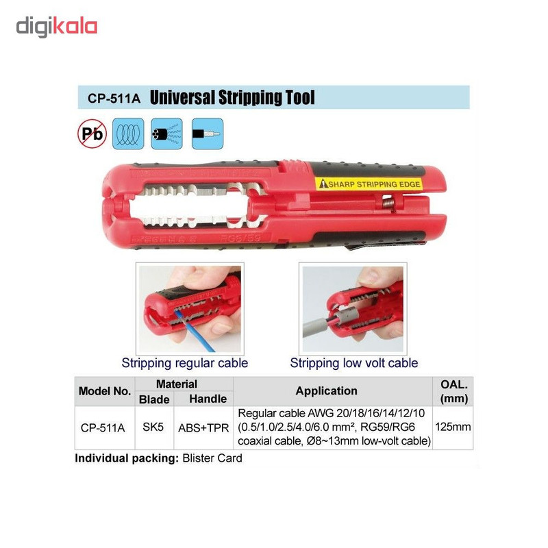 سیم لخت کن CP-511A از شرکت پروسکیت است. این سیم لخت کن قابلیت پشتیبانی از اندازه های 0.5 تا 13 میلی متر و کابل لخت کن RG6 , RG59 دارد.