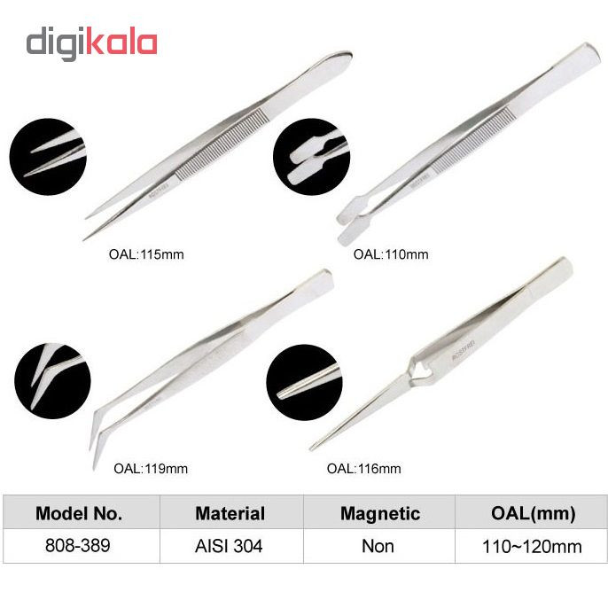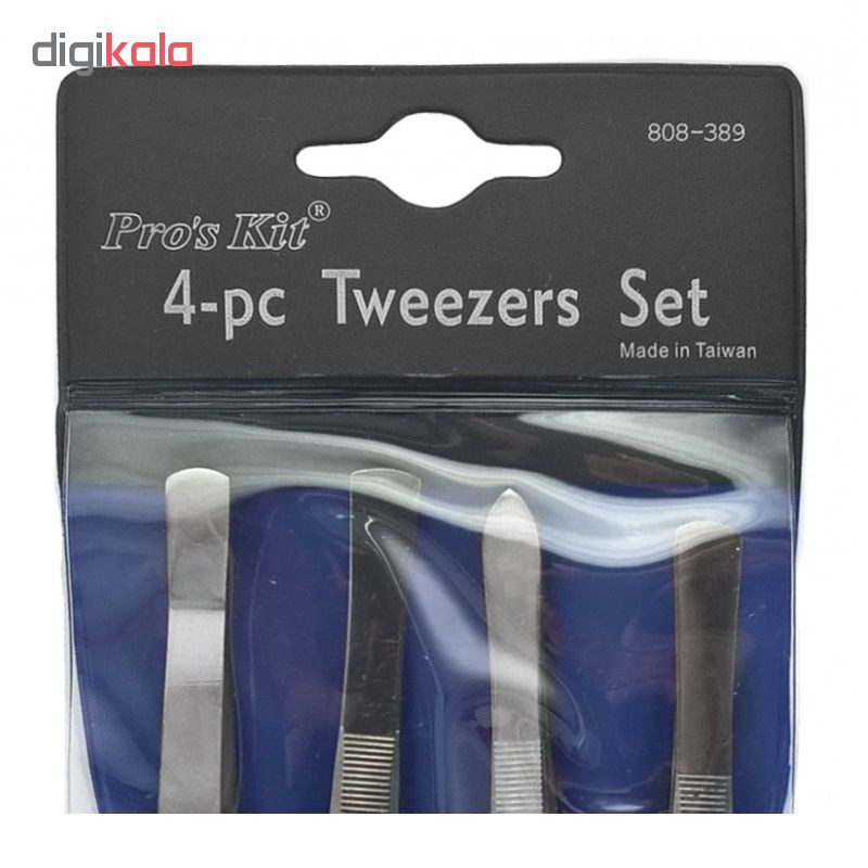 مجموعه چهار عددی پنس 808-389 از شرکت پروسکیت است. این محصول تولید تایوان دارای 4 عدد پنس در اشکال صاف ، کج ، پهن و معکوس میباشد. همچنین این مجموعه دارای بسته بندی مناسب برای حمل آسانتر برای مصرف کننده می باشد.