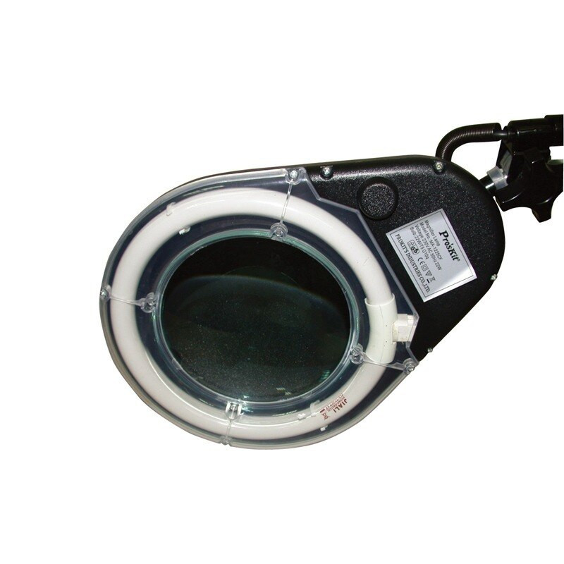 ذره بین رومیزی با عدسی کروی به شکل دایره و از جنس شیشه با قدرت بزرگنمایی 5 برابر که با یک عدد مهتابی بر روی یک بازوی خرطومی قابل تنظیم نصب شده و کل مجموعه بوسیله یک بیس بر روی میز کار یا مطالعه میتواند قرار بگیرد. این لوپ ذره بین بین جهت مصارف مختلف خانگی مانند مطالعه و یا برای کنترل و چک کردن برد های الکترونیک و امثال آن طراحی گردیده است. این محصول توسط شرکت آمریکایی پروسکیت در کارخانه تایوان یا چین ساخته میشود و از کیفیت بالایی برخوردار است.