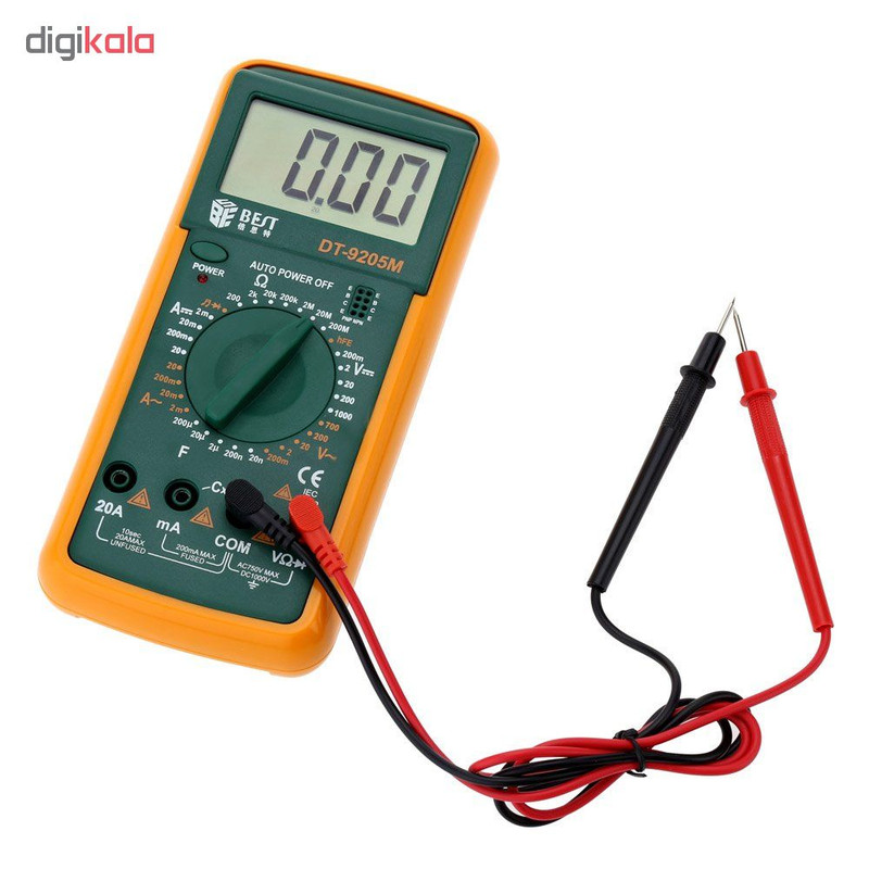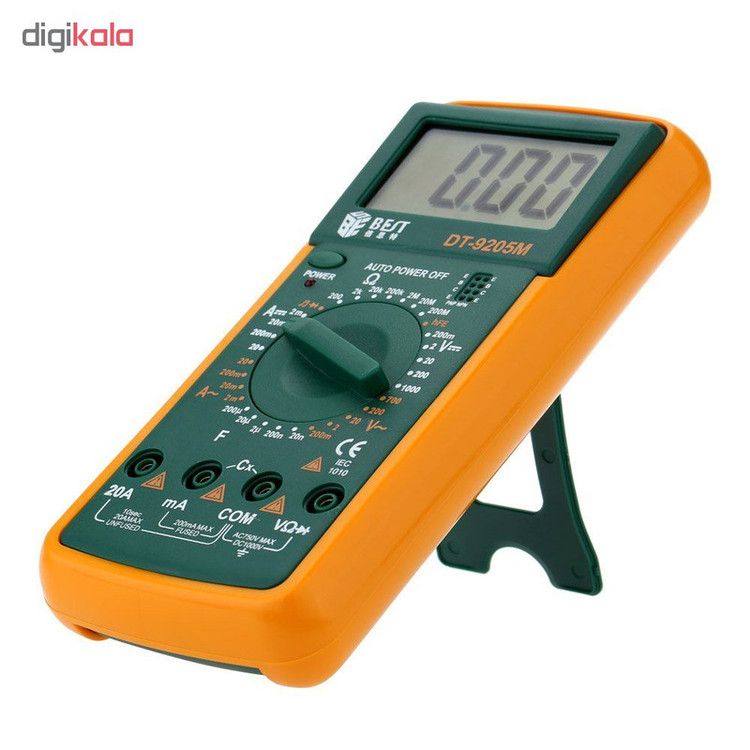 مولتی متر دیجیتال بست DT-9205M این مولتی متر به عنوان یک مولتی متر با قیمت مناسب و کیفیت متوسط و با هدف استفاده دانشجویان و دانش آموزان ارائه میگردد. قابلیت اندازه گیری ولتاژ متناوب AC و مستقیم DC قابلیت اندازه گیری جریان متناوب و مستقیم تا 20 آمپر قابلیت اندازه گیری رنج وسیعی از مقاومت و خازن قابلیت تست اتصال کوتاه (آلارم با بیزر و ال ای دی) تست دیود تست ترانزیستور و اندازه گیری بتا hfe بطور کلی در بحث دقت اندازه گیری و همچنین کیفیت، این مولتی متر در حد متوسط به پایین می باشد و جهت انجام کارهای حرفه ای لازم است از مولتی مترهایی با کیفیت تر استفاده نمایید. یک جفت پراب مولتی متر همراه کالا می باشد.