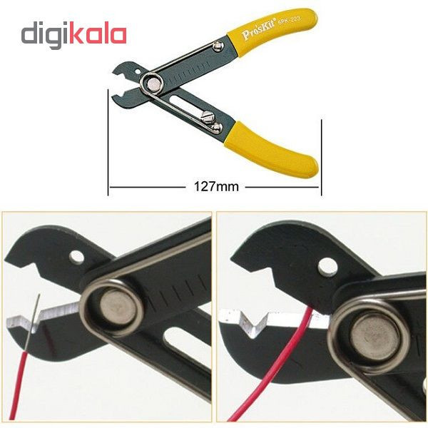 سیم لخت کن 6PK-223 از شرکت پروسکیت میباشد. این سیم لخت کن با پیچ تنظیمی که دارد قابلیت لخت کردن سیم در اندازه های AWG 10~30 را دارد. همچنین این ابزار دارای سیم چین نیز می باشد.