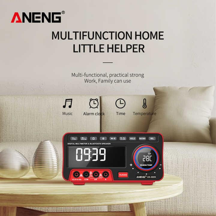 ویژگی های این مولتی متر رومیزی ساعت زنگ دار، روشنایی قابل تنظیم، اندازه گیری دمای محیط و دارای بلندگوهای بلوتوثی هستند.