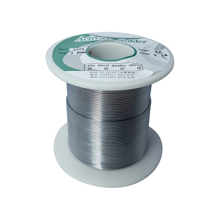 سایر توضیحات: - سیم لحیم بسته 500 گرمی - وزن خالص سیم لحیم تقریبا 490گرم - قطر سیم 0.8 میلیمتر - آلیاژ 63% قلع و 37% سرب - کانال مرکزی سیم حاوی روغن لحیم